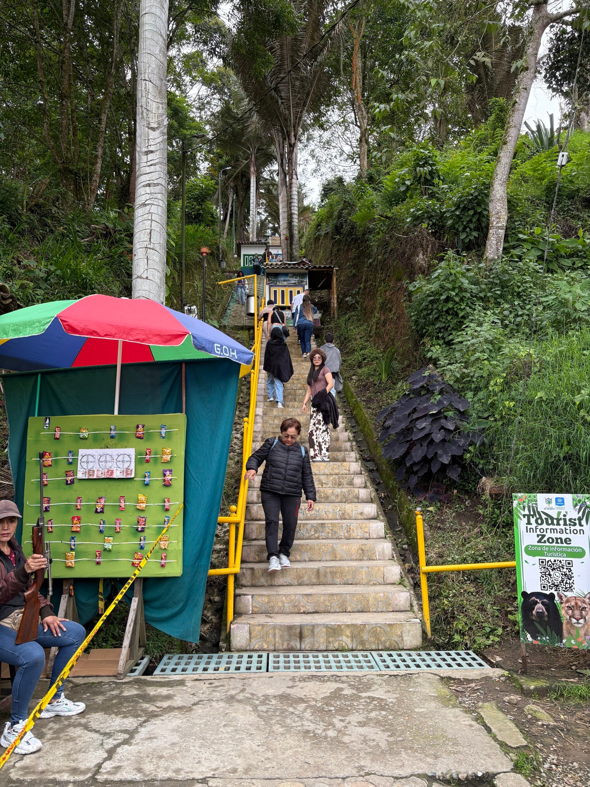 Dan even terug naar die ene heel belangrijke reden waarom we Salento bezoeken, weet je nog? Jawel, Salento heeft echt een unique selling point. Dé reden waarom Salento massaal bezocht wordt, is omdat je hier de Cocora Valley vindt, een van de laatste vier bossen met waxpalmbomen in de hele wereld. Die waxpalmboom: naast de nationale boom van Colombia (zoiets bestaat blijkbaar - iemand die de nationale boom van Nederland weet?), is die boom ook de allergrootste palmboomsoort van de hele wereld. Op naar Cocora Valley dus…