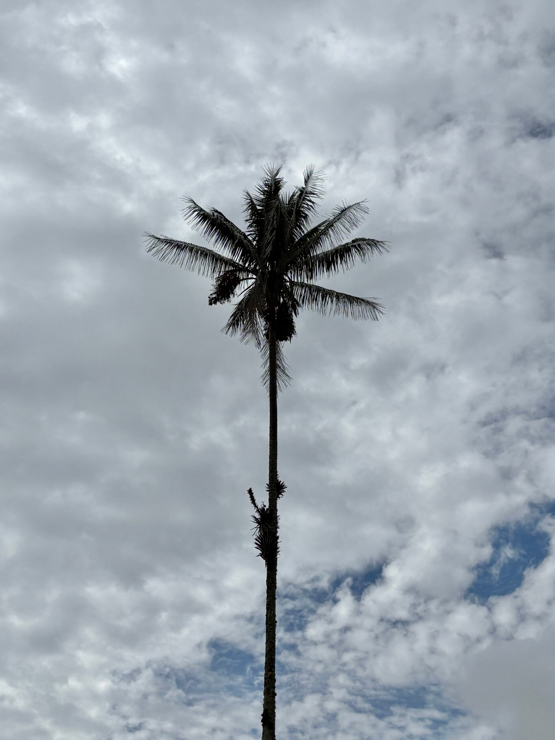 En wauw. Wauw, wauw, wauw. La Carbonera vormt het mooiste uitzicht dat we tot nu toe hebben gezien. We staan op de helling van een diepe vallei en overal waar we kijken zien we die enorme waxpalmbomen van vijftig tot zestig (en soms zelfs richting de zeventig meter) hoog, als paddenstoelen uit de grond geschoten. Het is alsof je midden in een sprookje bent beland. Het is werkelijk prachtig. Overal waar je kijkt, aan de kant waar we zitten, aan de overkant van de vallei, zien we deze wonderbaarlijke palmbomen.