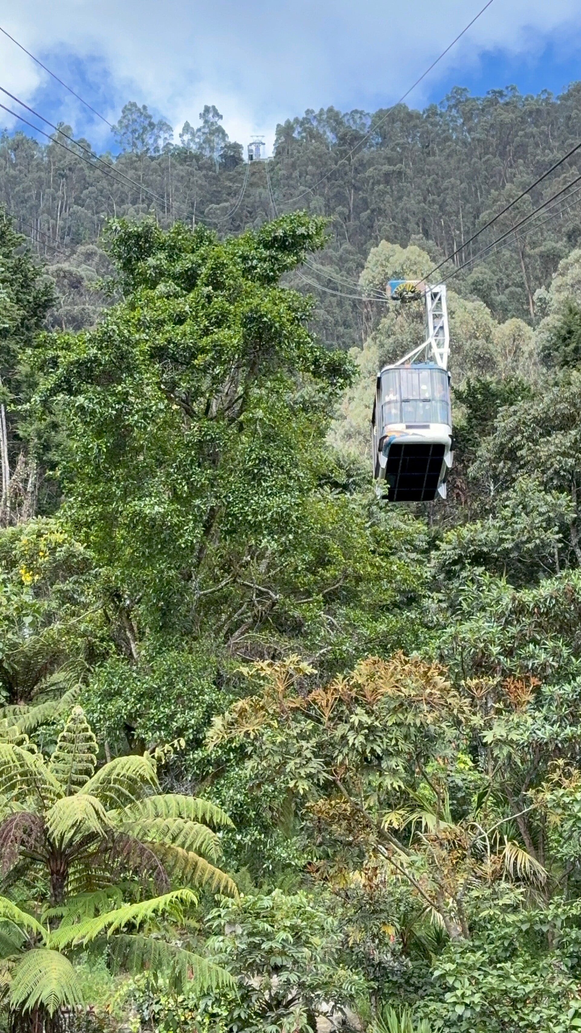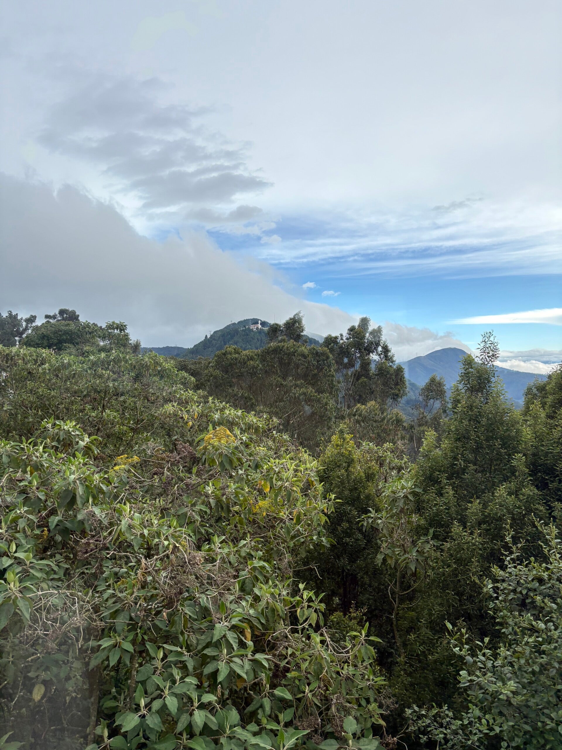 Ja, de Monserrate: de reus van 3150 meter hoogte die samen met de Guadeloupe de oostkant van Bogotá flankeert. Beklimmen gaan we ‘m niet (wat wel kan) want je kunt op twee leukere manieren die Monserrate op: die teleférico die we de heenweg pakken of de funicular, een pendeltreintje zoals we die ook eentje in George Town, Maleisië hadden, maar die bewaren we voor de weg omlaag. Van uitzichten in de Teleférico komt het nog niet, want het is net alsof we in het hartje van de zomer staan te wachten op een achtbaan in Walibi World, zo druk is het. Het duurt langer dan een halfuur voor we eindelijk als sardientjes in een blik op elkaar gepropt in de teleférico zitten en wij in het midden van de meute staan. Bogotá lijkt onder voornamelijk Nederlandse toeristen niet zo geliefd (iedereen die we tegenkwamen was negatief over de stad, maar dat lijkt meer op kuddegedrag want echt duidelijk aantoonbare redenen worden nooit gegeven). Onder Colombianen daarentegen is de hoofdstad een geliefd bedevaartsoord en zijn de teleférico en de funicular naar de Monserrate twee van de vakjes die doorgaans in een Colombiaans leven afgevinkt moeten worden. Ondanks het gebrek aan uitzichten was het ritje van tien minuutjes naar boven wel heel leuk, want ik word door een Colombiaan aangesproken. En niet zomaar eentje: eentje die Nederlands spreekt. Nederlands! Je hebt me dertig bingokaarten kunnen geven met alle mogelijke combinaties, maar in een kabelbaan in Colombia door een Colombiaan in het Nederlands aangesproken worden, staat zeker weten op geen enkele van die dertig kaarten. Heeft in zijn jonge jaren (ik denk dat ik nog steeds ouder ben dan hij, dus die uitspraak doet me oud voelen) door Europa gereisd en is verliefd geworden op een Nederlander en woont nu vierenhalf jaar in Amsterdam. Wat zijn de kansen? Afgezien van zijn teleurstelling dat we niet in zijn geboortestad Calí zijn geweest (sorry, keuzes maken, en de salsahoofdstad hebben we overgeslagen vanwege onze houten motoriek), is de rit naar boven gezellig, amicaal en ontwapenend. Na de teleférico zijn we ‘m snel kwijt, want hij blijkt iets minder onder de indruk van de traptreden in de ijle lucht.