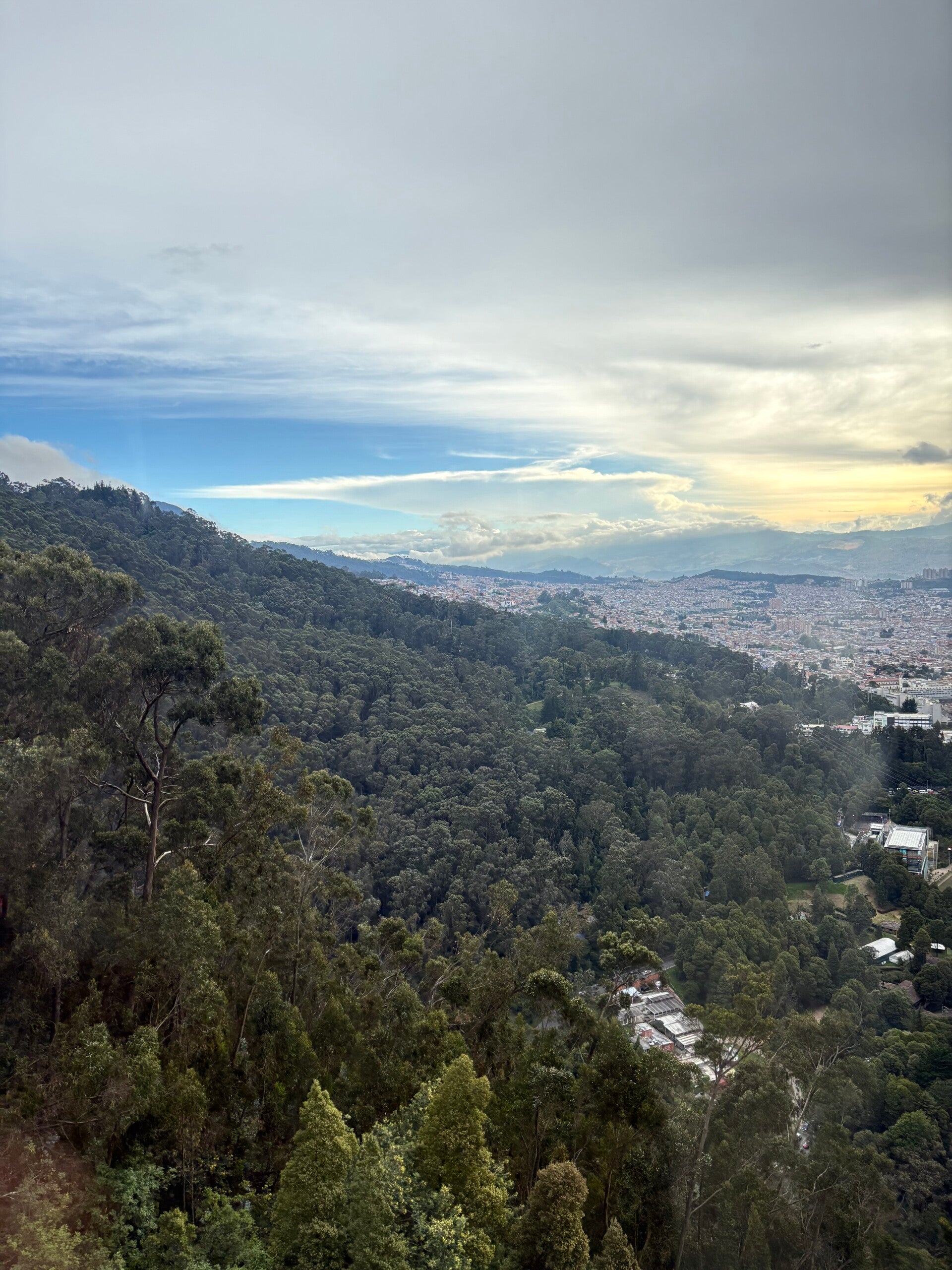 Richting het vallen van de avond, besluiten we omlaag te gaan, maar we krijgen een teleurstelling te verwerken: de funicular is dicht! Vijf uur geweest! Geen pendeltreintje voor ons dus, maar toch maar weer die teleférico in. Om onverklaarbare redenen wachten we minder lang dan de heenweg (terwijl die funicular er dus uit ligt) en als we beneden zijn, crost onze taxi ons nog even naar een supermarkt in de buurt. Bogotá schijnt een stad te zijn die onveilig is na zonsondergang, maar je kunt je ook wel voorstellen dat er in een stad waar 11,5 miljoen mensen rondlopen, veel verschillen zijn tussen de wijkjes. Teusaquillo, de wijk waar wij zitten (Laureles in Medellín beviel goed, dus we maken een keuze voor een soortgelijke hippe wijk in Bogotá) is levendig en gemoedelijk tegelijkertijd en zelfs in het donker krijg je er het gevoel in adamskostuum rond te kunnen lopen zonder commentaar te krijgen.
