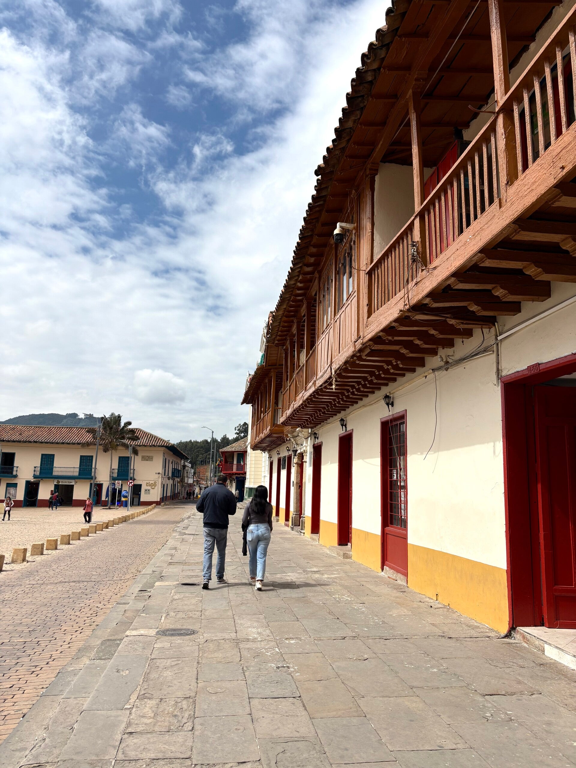 Dus lopen we in een halfuurtje naar Zipaquirá toe. Weet je nog dat ik het een paar blogs geleden over die drie uitlopers van de Andes had? Die drie Cordillera’s? Medellín lag in de Central, Jardín in de Occidental en nu in Bogotá zitten we in die derde Cordillera, de Cordillera Oriental. Waar die eerste twee Cordillera’s hun dorpjes in alle kleuren van de regenboog hullen, lijken dorpen in de Cordillera Oriental voor eenduidigheid te kiezen. Niet dat het minder mooi is: Zipaquirás keuze valt op een prachtig soort beige-bruin: alle huizen, alle paden en alle wegen zijn gehuld in een soort beige, met als uitschieter het Plaza Principal, geflankeerd door de kerk Diócesis Zipaquirá. Schitterend!