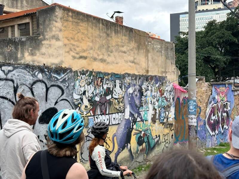 Onze laatste dag in Bogotá doen we een fietstour. We komen iets te laat en in de taxi zijn we vooral even elkaar de schuld aan het geven van het te laat komen (soms komt de drang voor een grote boodschap bij twee personen precies tegelijk op het verkeerde moment), maar als we onder leiding van Mike, een oude, onwijs grappige man uit Californië wiens bakkebaarden doorlopen over zijn gehele nek en keel, op de fiets stappen, is de irritatie al snel vergeten. Eerder zei ik dat voornamelijk Nederlandse toeristen Bogotá niet zo hoog hebben zitten, maar daar snappen wij echt helemaal niks van en zeker na deze tour niet. Bogotá is echt een heel erg mooie en levendige stad.