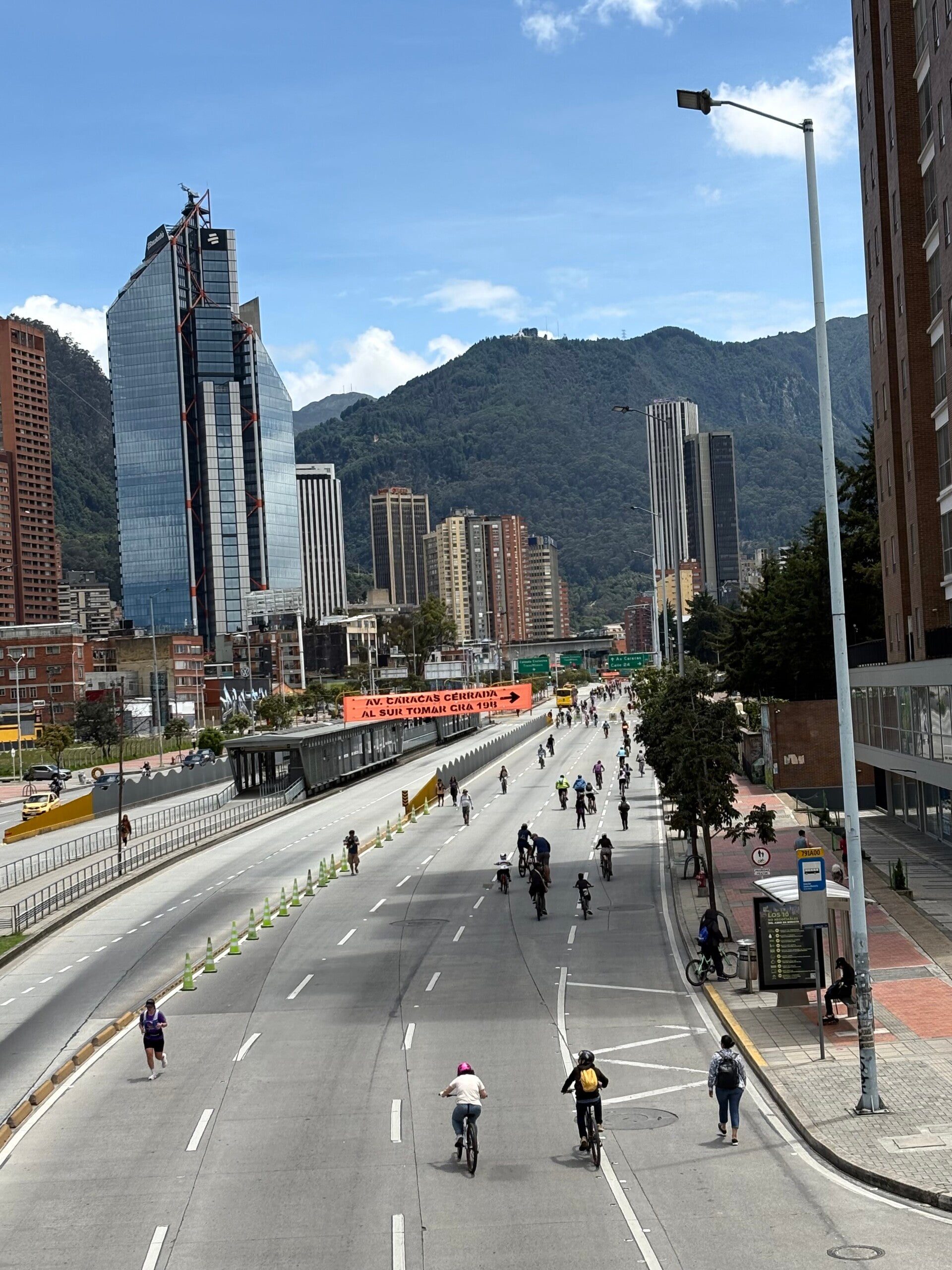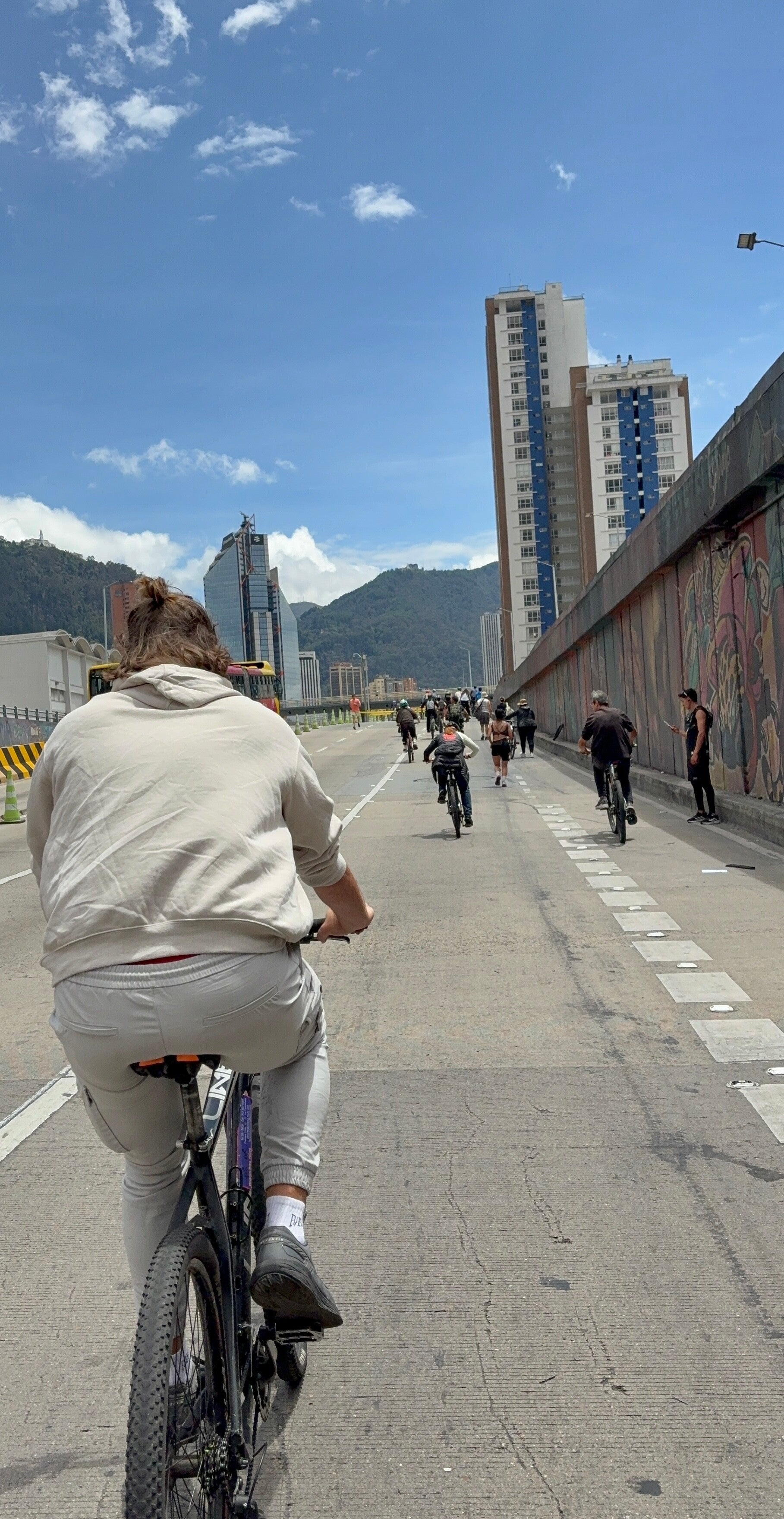 Iedere zondag en elke feestdag sluiten Colombiaanse steden de grootste verkeersslagaders van de stad. Zo ook Bogotá en zo ook vandaag: vandaag is het namelijk zondag en zonder te weten wat ons te wachten stond, fietsen we opeens op de Ciclovía van Bogotá. Een bizar fenomeen: op een vierbaanse snelweg is geen auto te bekennen. Alleen maar fietsers en skeeleraars. Een sociaal-cultureel fenomeen dat mensen samenbrengt. Muziek, eetkraampjes, fietsers, hardlopers en skeeleraars: allemaal op deze snelweg.