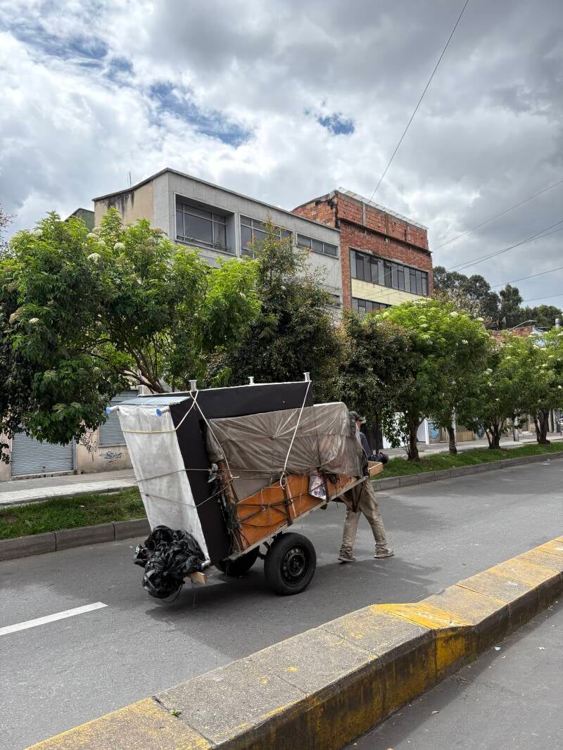 Nog voor het koken zien we vanuit ons slaapkamerraam op drie hoog voor ons op straat twee jonge gast op straat met een soort aanhangwagen aan vuilnis vooruit trekken en we zien ze voor ons hotel stoppen bij de stapel vuilnis die bij ons op straat opgespaard ligt. Het is aandoenlijk: een stad met zo veel inwoners kent natuurlijk ook de grootste verschillen en in een rijke wijk als Teusaquillo is het niet vanzelfsprekend dat je de schaapjes op het droge hebt. Keurig nestelen ze zich in de hoop afval voor ons huis, maken de zakken open, op zoek naar eten, maar belangrijker: ze maken de zakken ook weer dicht om de straat schoon te houden waardoor de vuilnismannen gewoon keurig hun werk blijven doen. In de hoek van de kamer ligt een grote zak brood. Die gaan we weg mieteren, wisten we al, maar Geertje krijgt het nobele idee om het brood beneden aan de jongens te geven, dus dat gaat ze doen. Zij zijn op zoek naar eten, wij mikken het overbodige weg. Da's oneerlijk en met een goede daad maken we, denk ik, de wereld weer net een klein beetje beter.