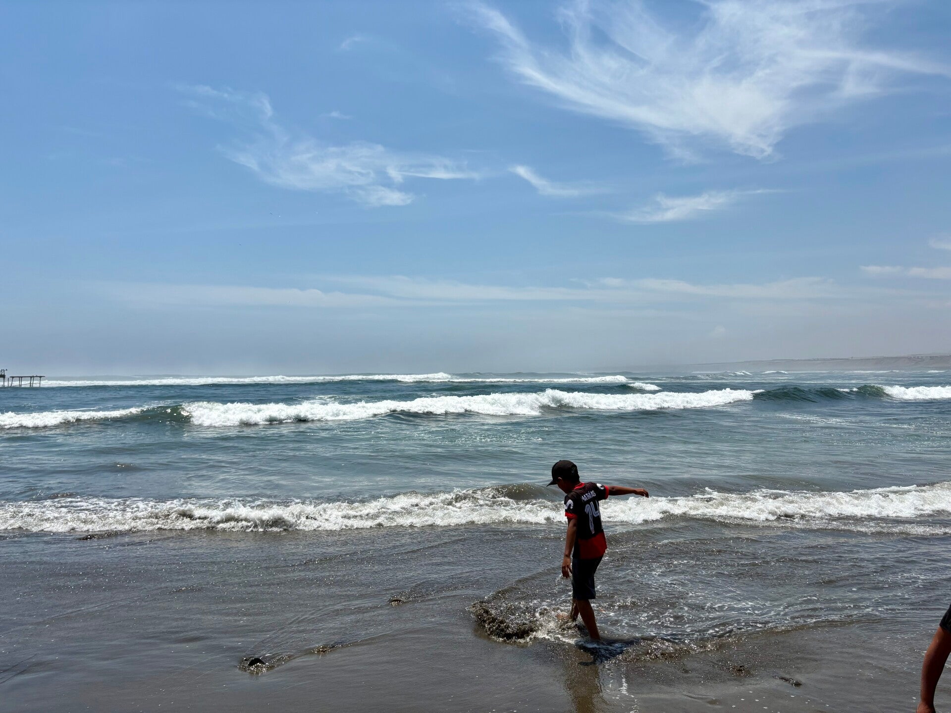 Half zeven staan we al naast ons bed en met de camera klaar om te vuren haasten we ons naar het strand van Huanchaco. We turen en turen over het water, maar de horizon laat nog geen vissers op caballitos zien. Tien minuten later nog steeds niet. Een halfuur later nog steeds niet. Dat we dat halfuur überhaupt nog afwachten is ook eigenlijk een beetje dom, want naast de kant van het water staan de caballitos gewoon met de neus omhoog het ochtendzonnetje welkom te heten terwijl er geen visser in zicht is.