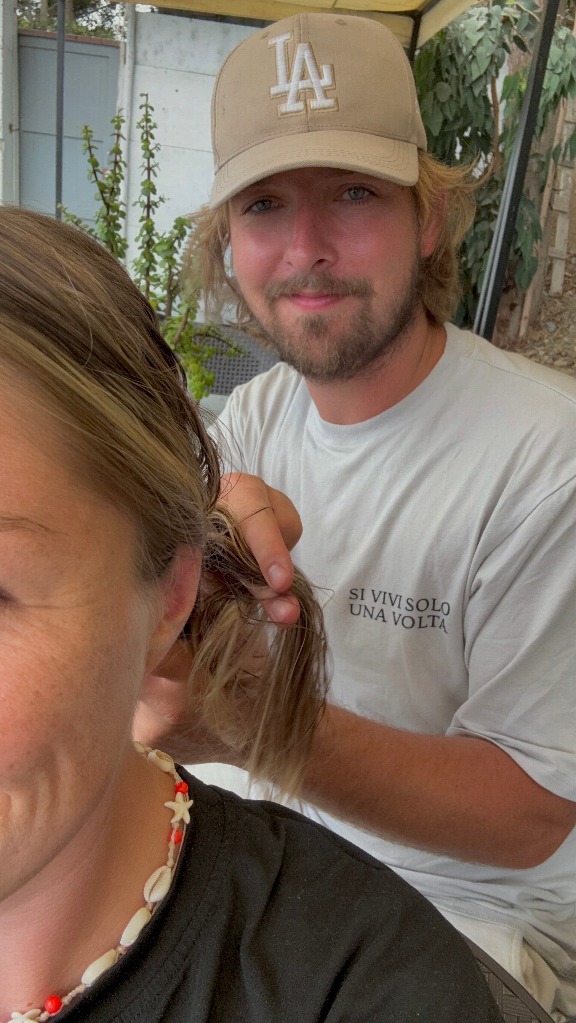 We druipen af naar ons zwembad. Die golven hebben ons even een partij de mantel uitgeveegd… Wonden likken bij het zwembad en dan nog even wat maken van onze laatste dag. Maar dan wordt Geertje door een bij gestoken, rent ze gillend van de pijn rondjes om het zwembad en reageert ze vanaf dat moment als een hypersensitieve dragqueen op alle zoemende geluidjes die binnen een straal van een meter komen. Het gaat wel lekker vandaag. Mijn vlechtlessen gaan gelukkig wel goed.