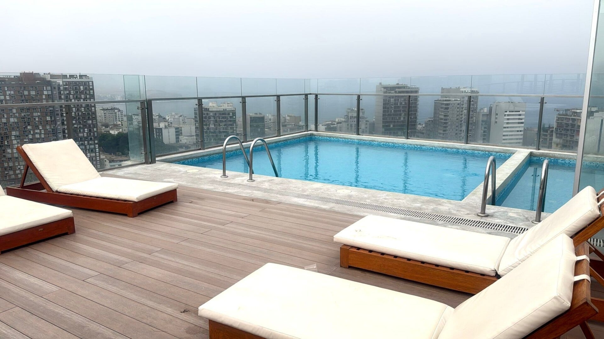Dag één van Geertjes solo-Lima-trip is geen boeiende. Boodschappen, sporten en heel veel regelzaken. We declareren onze ziekenhuisrekeningen ook nog even, en na al het geregel, de was doen en zorgen, brengt Geertje nog even tijd door in het zwembad en de jacuzzi op het dak van ons gebouw. Locatietje wel, hoor: op 22 hoog zijn er vanuit het water mindere uitzichten te bedenken.