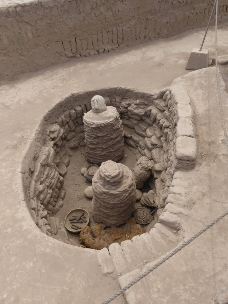 Was het leven dan zó ontzettend ruk als Wari? Nee, viel wel mee. Men dacht gewoon dat het huidige leven één van de vele andere levens was die ze nog zouden krijgen en al gehad hadden. De dood was slechts een nieuw begin. Er ging dus ook nooit rouw of verdriet mee gepaard. Als je als werkende man vroegtijdig overleed, dan werden je vrouw en kinderen ook gewoon gedood. In je volgende leven moest je immers ook werken en daar had je je vrouw en kinderen gewoon bij nodig, toch? Het is om die reden dat we tijdens onze wandeling op een aantal plekken de stoffelijke resten vinden van hele families, waar zelfs kleine baby’tjes bij liggen. En dat klinkt heel cru, maar schijnbaar was dit dus een doodnormale, volledig geaccepteerde gang van zaken. Als je doodging, ging je gewoon weer verder leven, maar dan ergens anders. Hah, ze moesten eens weten dat dat klinkklare onzin is. Iedereen weet toch dat reïncarnatie onzin is en dat Jezus en God dadelijk bij de Poorten des Hemels hun oordeel over ons vellen, toch?
