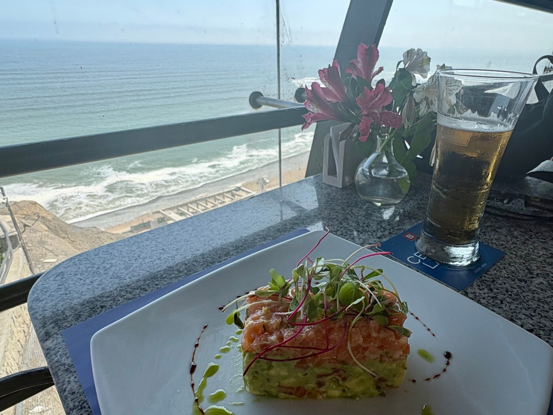 Het uitzicht op het dakterras is fantastisch. Bij ons vorige hotel keken we naar de zee: nu kijken we meer over de stad. Het is er adembenemend mooi! En zoals ik me heb laten vertellen: die Cusqueña trigo’s smaakten prima. Even later vertrekken madre y hija naar Miraflores om bij dat weergaloos lekker Nikkei-tentje Yúsha te gaan eten, maar vlak voor ze naar binnen wandelen gaat de telefoon. Althans, Anita haar telefoon. Geertje is met de verzekering aan het bellen voor een akkoord. Ik ben het, met de vraag of ze naar het ziekenhuis kunnen komen. Ik mag vanavond aan het infuus.