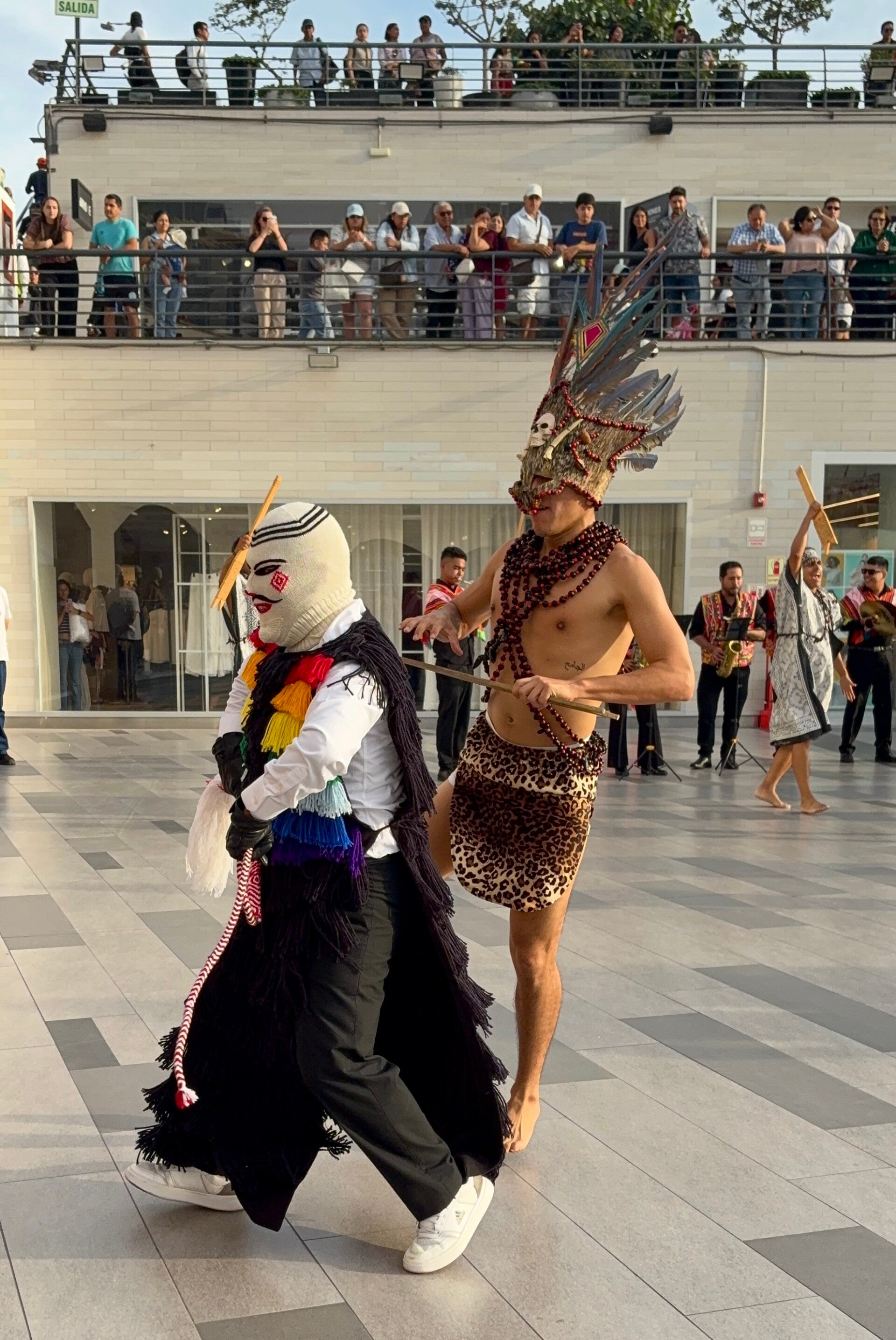 Voordat we een dag later in de avond aanschuiven bij Nikkei-restaurant Yúsha (geen top-50-restaurant, maar wel een goede – iets met prijzen en beschikbaarheid), werk ik de blogs nog bij. Geertje gaat naar Lancomar om nog wat meer kleding te shoppen (of ja niet slaagt, maar wel lekker ronddartelt daar en geniet van alles om zich heen), waar ze getuige wordt van een of andere immense straatact met Peruaanse klederkracht (die ze snel probeer te ontwijken, omdat ze naar het publiek lopen) nadat ze bij ons stamkoffietentje Don Guto weer een chemisch smakende Jugo Détox gedronken heeft (smaakt naar motorolie die je lichaam naar de fabrieksinstellingen helpt, maar Geertje vindt ‘m lekker). Ook bezoeken we nog even de Inka Market in Miraflores. Het is maar klein en overzichtelijk, maar op deze markt gooien we bij ieder kraampje dat we bezoeken zes. Een van de leukere marktjes met de meest uiteenlopende souvenirs die we tot nu toe hebben gezien. Via Kennedy Park (waar het bruist als een bruisbal in een heet bad: er wordt volop gedanst) lopen we naar Parque del Amor en daar gaan de paragliders van de kliffen af. Het brengt ons op ideeën: zou Anita dit leuk vinden? Wie weet... Ook zijn we getuige van een top drie zonsondergang van deze reis. Dezelfde zee als toen in Huanchaco: de zon die langzaam in de zee verdwijnt en de zielen van de overledenen met zich meeneemt.