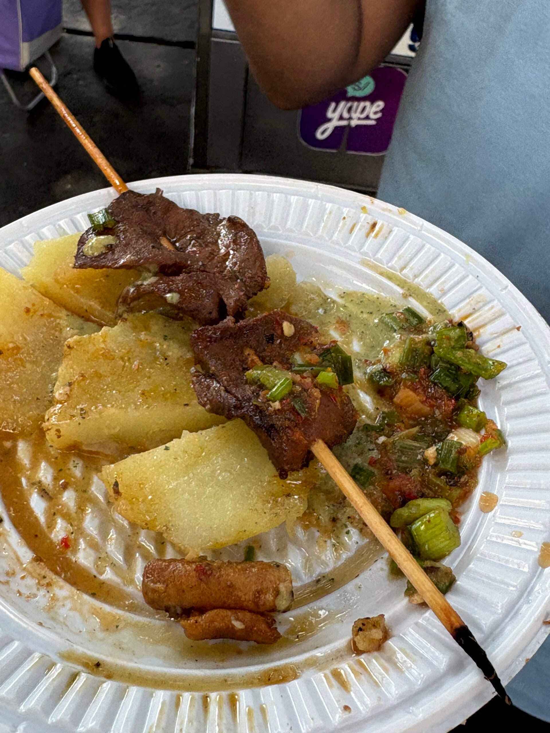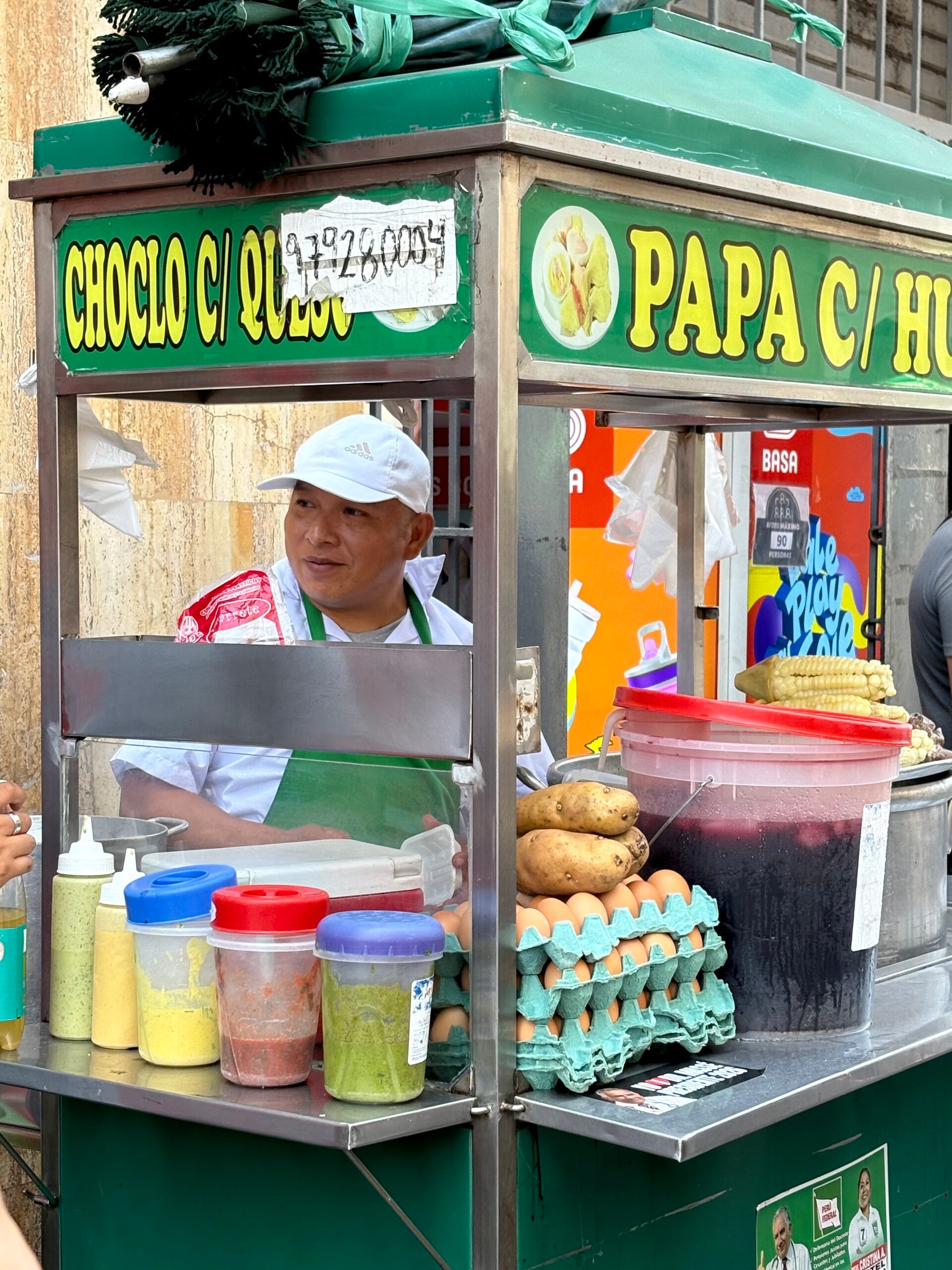 En het streetfood mag er ook zijn. Als we door de straten van El Centro lopen, krijgen we eerst een bakje bonen en gekookte aardappelen. Die aardappels komen uit Peru, weet je nog? Zonder Peru geen frietje speciaal bij de Febo, hé? Volgens Daniel zijn er 800 verschillende aardappelsoorten in Peru te vinden. Rijmt toch niet helemaal met de 3500 van de gids in Huaca Pucllana, maar goed. De waarheid zal wel ergens in het midden liggen.