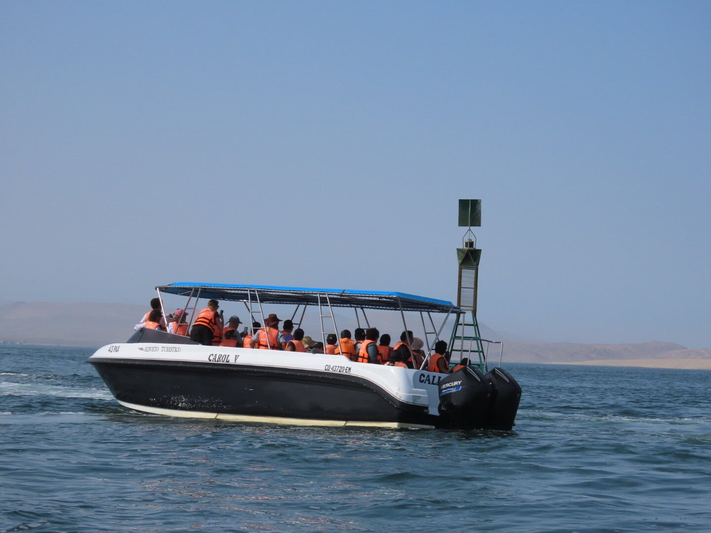 Serieus toevallig, want als we ons een weg banen door Paracas naar de pier, zien we hoe druk het is en hoeveel mensen er wel niet naar die eilanden willen. Paracas lijkt het Scheveningen van Peru te zijn en het blik Peruanen dat hier opengetrokken is doet vermoeden alsof je in het hoogseizoen een bootje in Giethoorn probeert te scoren. Wat een mensenmassa! Dat stukje hoogseizoen klopt overigens wel. Pasen komt eraan dit weekend en voor Latino’s staat Pasen wel een paar treden hoger in de rangorde dan bij ons in Nederland. De week voorafgaand aan Pascua noemen ze Semana Santa. De Heilige Week. Vanaf donderdag (vandaag) krijgt heel Peru vrij en – we waren al gewaarschuwd – trekt iedereen eropuit om in volle glorie toerist in eigen land uit te hangen. De boottrip naar de eilanden vormt daarop absoluut geen uitzondering. Het is hier een chaos van jewelste.