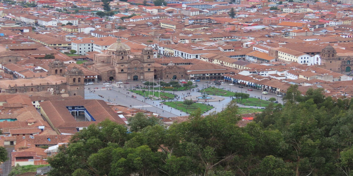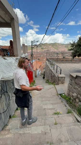 We lopen hijgend – lang leve de 3500 meter hoogte waarop Cuzco ligt – een paar trappen op en spotten al een paar barretjes die we in betere gezondheid van de bucketlist gaan strepen en stoppen bij Mirador de San Blas voor een weids uitzicht over de oude Incahoofdstad, alvorens onze stadswandeling abrupt afgebroken wordt.