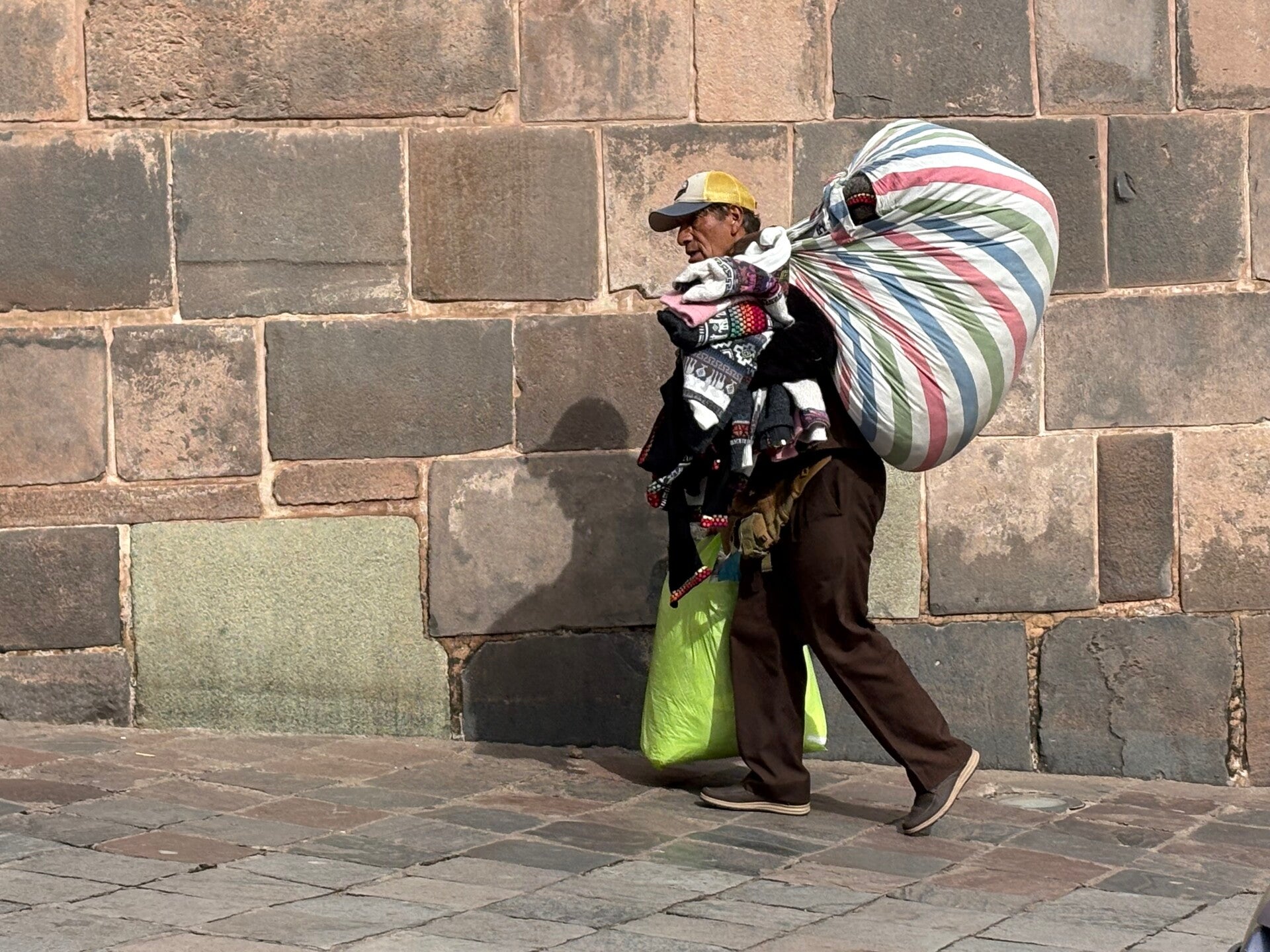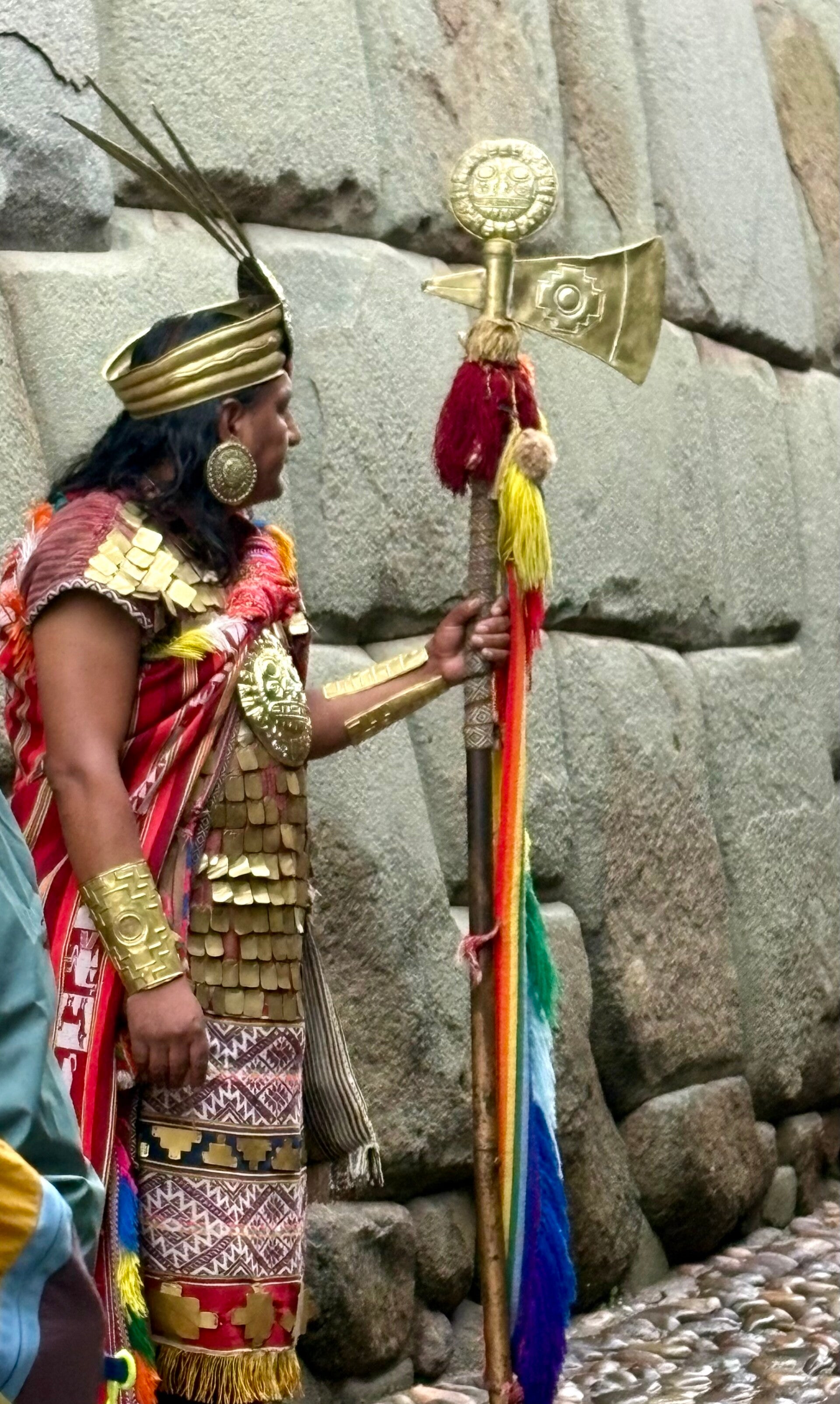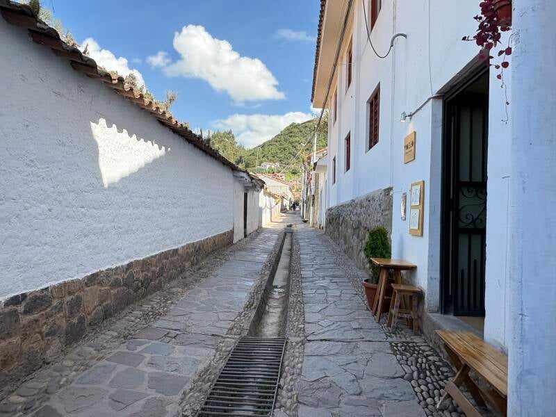 Dat een ogenschijnlijk willekeurige steen nog zo interessant kan zijn, hé? Hadden wij ook niet gedacht. We lopen vlak ervoor ook nog even over het Plaza de Armas met haar prachtige koloniale kerken en het standbeeld van Pachacuti, de negende Inca-koning, wiens cosplayer even later bij de Piedra de los 12 ángulos rondhangt. Vlak erna lopen we over het Plazoleta de las Nazarenas, waar de meest exclusieve hotels van Cusco liggen, waarna we gedwongen worden om onze free walking tour voor de tweede keer te staken: het begint keihard te regenen! Nog een voordeel van je eigen free walking tour organiseren: als het noodweer wordt, hoef je niet tegen wil en dank in die hele wandeling af te slenteren, maar duik je gewoon de kroeg in voor een biertje.