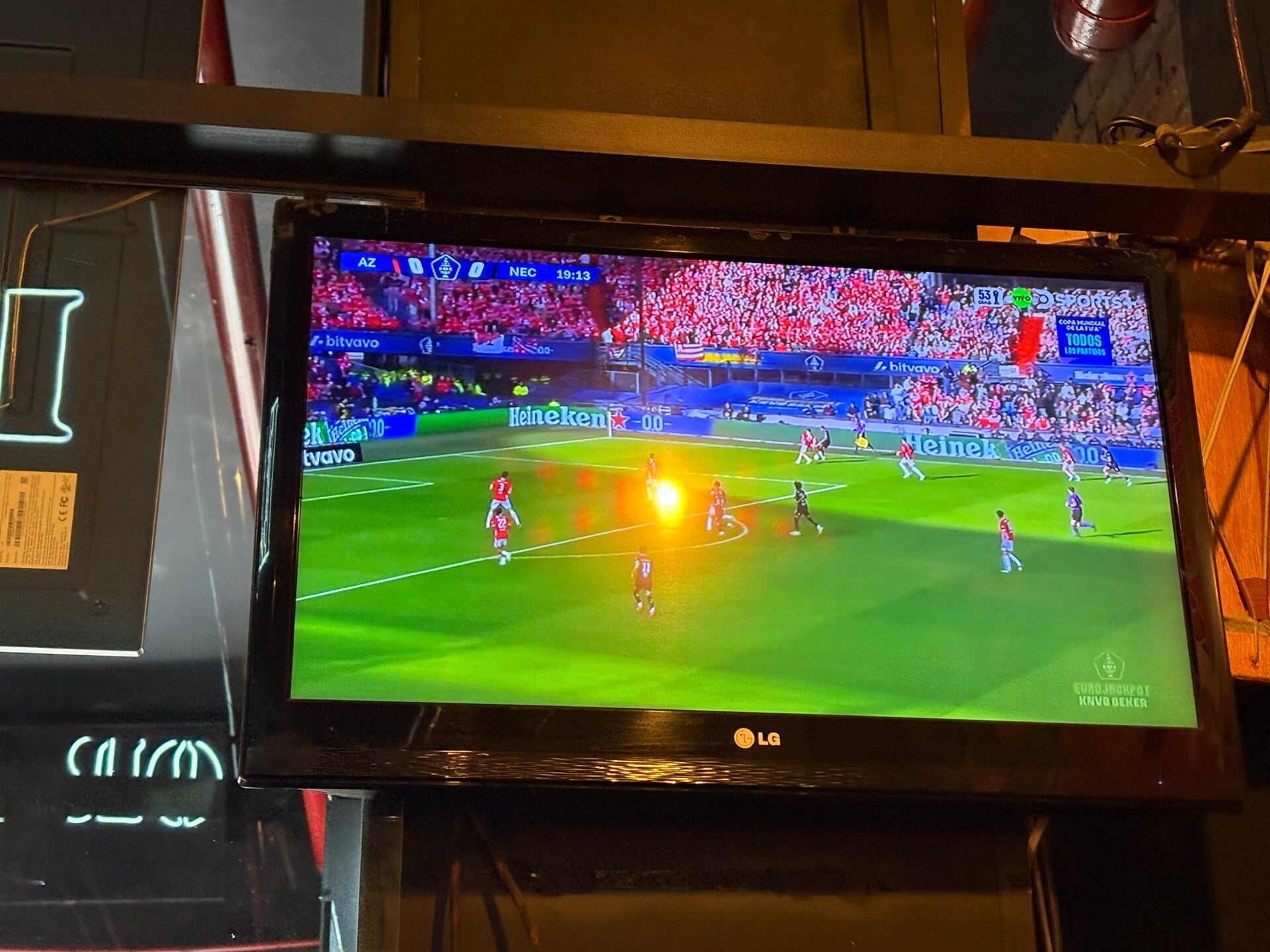 Op dag twee zitten we om 10.30 aan het bier. Het is 19 april en twee jaar geleden was dit de datum dat we thuiskwamen vanuit Australië en het is niet de weemoed of de melancholie die ons aan het bier helpt, maar het is de bekerfinale tussen AZ en NEC die ervoor zorgt dat het ontbijt met een biertje wordt vergezeld. Als Cuijkenaar is de voorkeur voor NEC duidelijk en gelukkig krijg ik Geertje daarin mee, maar de uitslag is net zo tegenvallend als het weer. Dus dan maar weer bitterballen eten en donker bier en cava drinken bij Massimo Café.