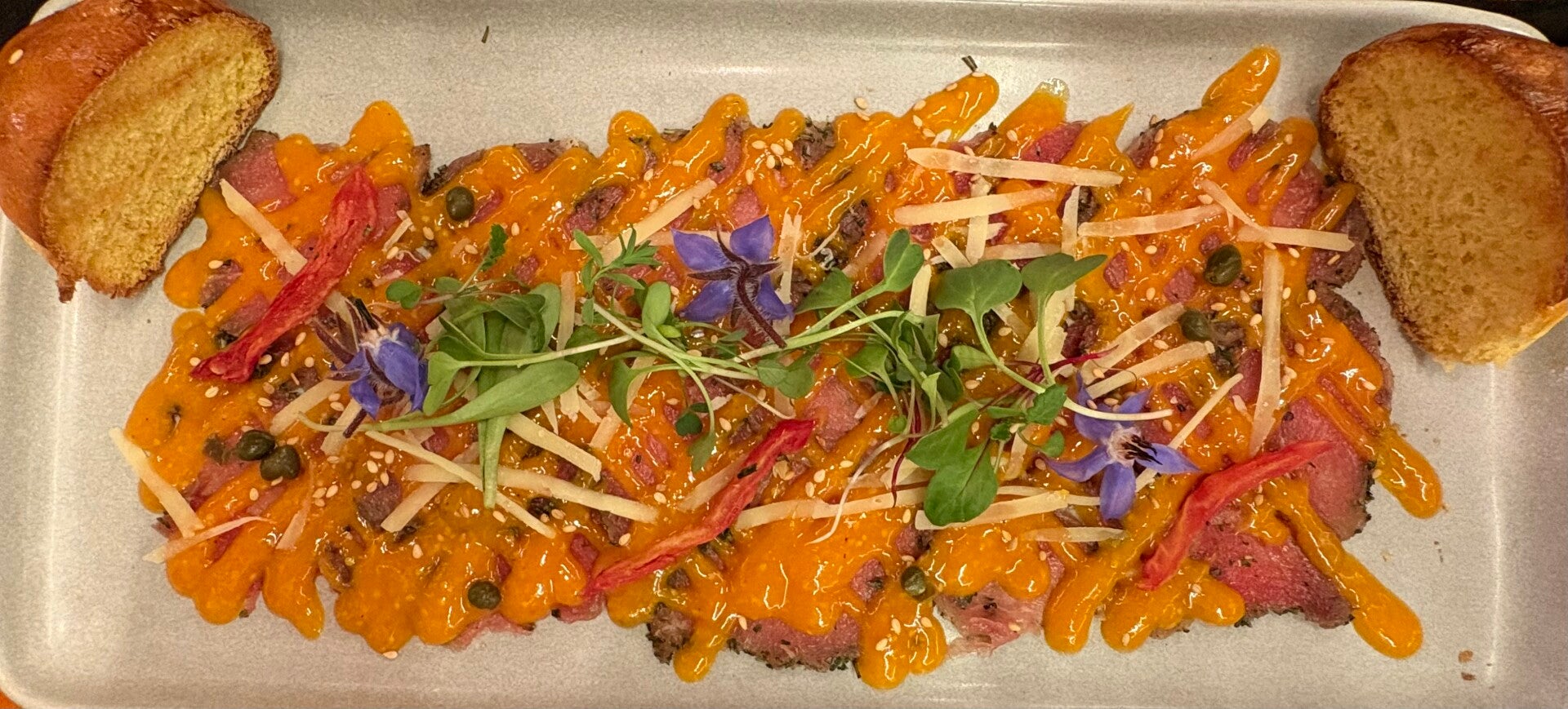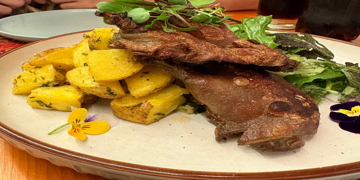 Nu we onze tijd in Cusco toch nog verder moeten rekken, besluiten we deel drie van onze free walking tour op onze (hopelijk) laatste dag in Cusco na de ziekenhuisafspraak te doen. Voor nu gaan we uiteten. Op naar de Peruaan. En niet zomaar een maaltijdje. Eentje die ons nog héél lang gaat bijblijven, maar die tevens ook niet voor herhaling vatbaar is. We schuiven aan bij het restaurant Moray. Chic plaatsje is het wel en in m’n trainingsbroek met hoodie ben ik buitengewoon underdressed. Het voorgerecht? Een alpaca-carpaccio met een dressing van golden berries. Heerlijke zoete vrucht, die golden berries. Is ook Peruaans fruit, zo’n golden berry, en ze worden ook wel Inca berries genoemd en ze zijn nog wel het meest te vergelijken met een lampion, maar dan de fruitvariant. Werkelijk waar een overheerlijke carpaccio, maar waar het vandaag vooral om draait, is het hoofdgerecht: de cuy confitado.